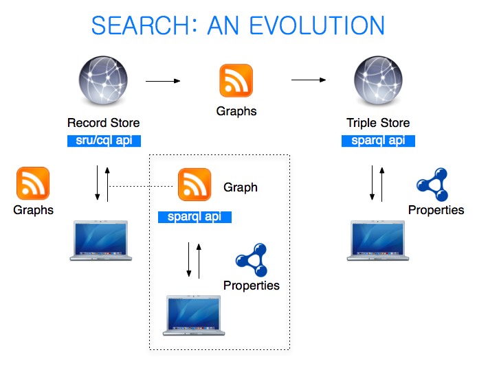 I thought I could take this opportunity to demonstrate one evolution path from traditional record-based search to a more contemporary triple-based search. The aim is to show that these two modes of search do not have to be alternative approaches but can co-exist within a single workflow.